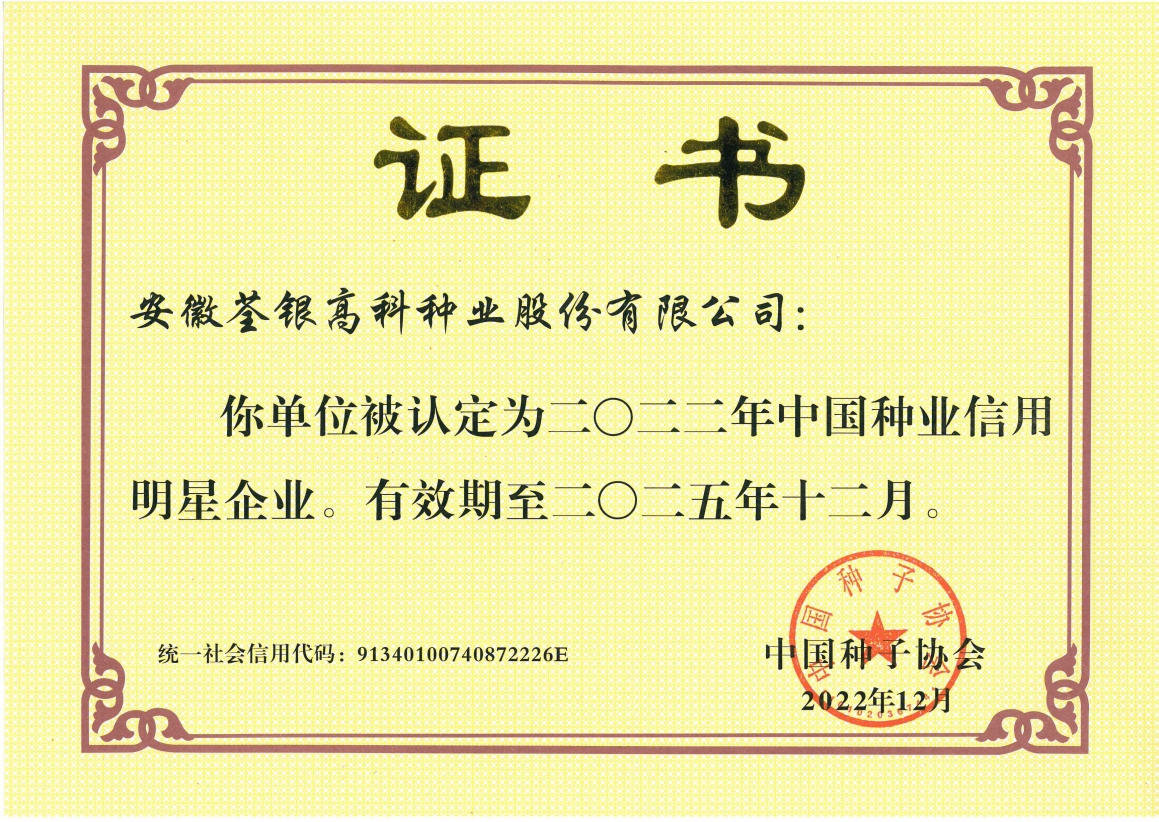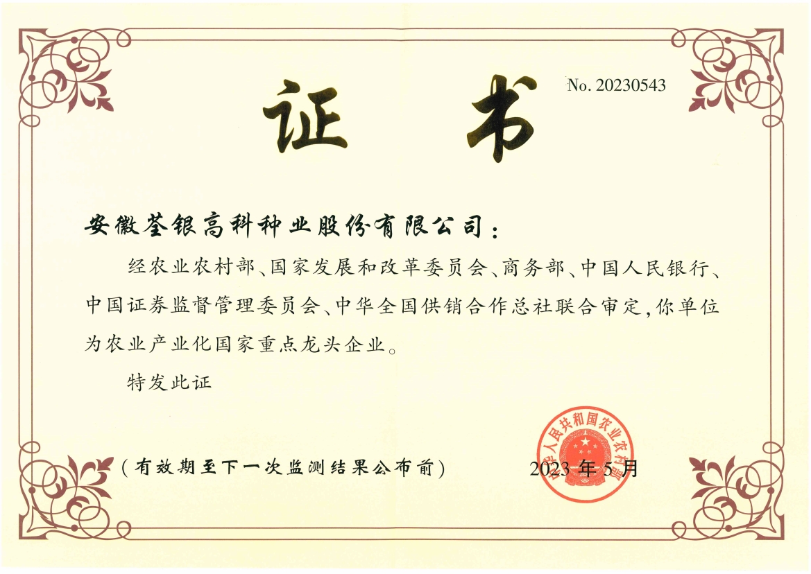 安徽荃銀高科種業(yè)股份有限公司是一家“以種業(yè)為核心、農業(yè)服務為延伸、探索和創(chuàng)新農業(yè)多元化發(fā)展”的現(xiàn)代高科技種業(yè)上市公司,證券代碼:300087。公司注冊資金9.47億元,系“中國種業(yè)領軍企業(yè)、農業(yè)產(chǎn)業(yè)化國家重點龍頭企業(yè)、國家高新技術企業(yè)、農業(yè)部首批農作物種子育繁推一體化企業(yè)、中國種業(yè)信用明星企業(yè)"。在國內控股子公司20多家,在國外設立分支機構4家,良種銷售至全國20多個省(市、區(qū)),出口覆蓋20多個國家與地區(qū),種業(yè)綜合實力、雜交水稻研發(fā)、推廣及海外業(yè)務規(guī)模均居全國種子企業(yè)前2位。